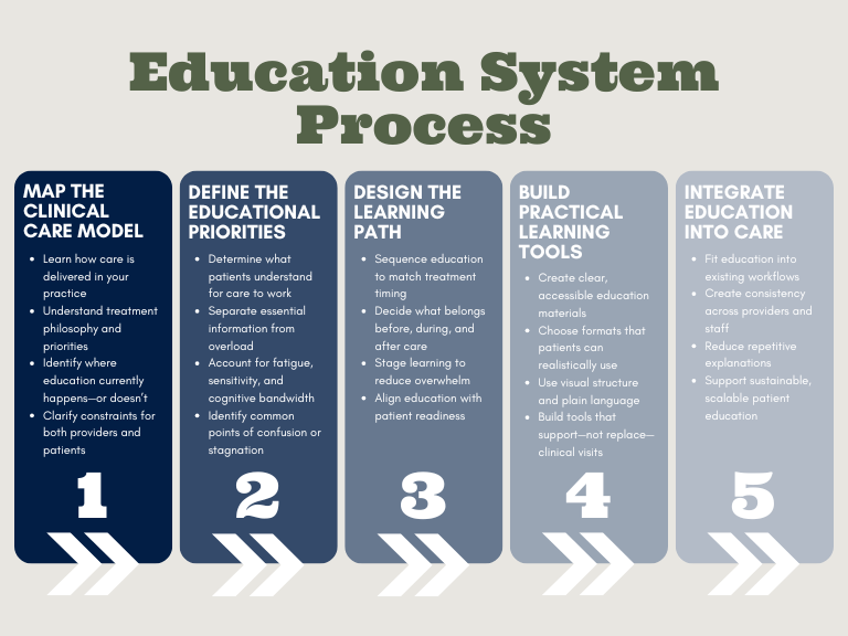 I approach patient education as a system—one that must respect cognitive load, emotional bandwidth, and timing within treatment. Clear education isn’t about giving patients more information; it’s about helping them absorb what matters, when it matters.